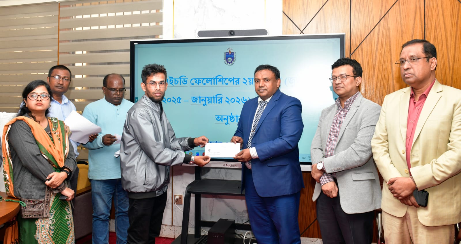 চেক হস্তান্তর অনুষ্ঠানে অন্যান্যের মাঝে উপস্থিত ছিলেন বিশ্ববিদ্যালয়ের উপ-উপাচার্য অধ্যাপক ড. মোহাম্মদ রেজওয়ানুল হক, কোষাধ্যক্ষ অধ্যাপক ড. মোহাম্মদ হানিফ মুরাদ, রিসার্চ সেলের পরিচালক অধ্যাপক ড. মুহাম্মদ শফিকুল ইসলামসহ বিভিন্ন বিভাগের শিক্ষক, পিএইচডি সুপারভাইজার, অনুদানপ্রাপ্ত গবেষক ও কর্মকর্তাবৃন্দ। এ সময় ফেলোশিপপ্রাপ্ত ১৮ জন শিক্ষার্থীর মাঝে সর্বমোট ৪৭ লক্ষ ১২ হাজার ৬০১ টাকার চেক হস্তান্তর করা হয়।