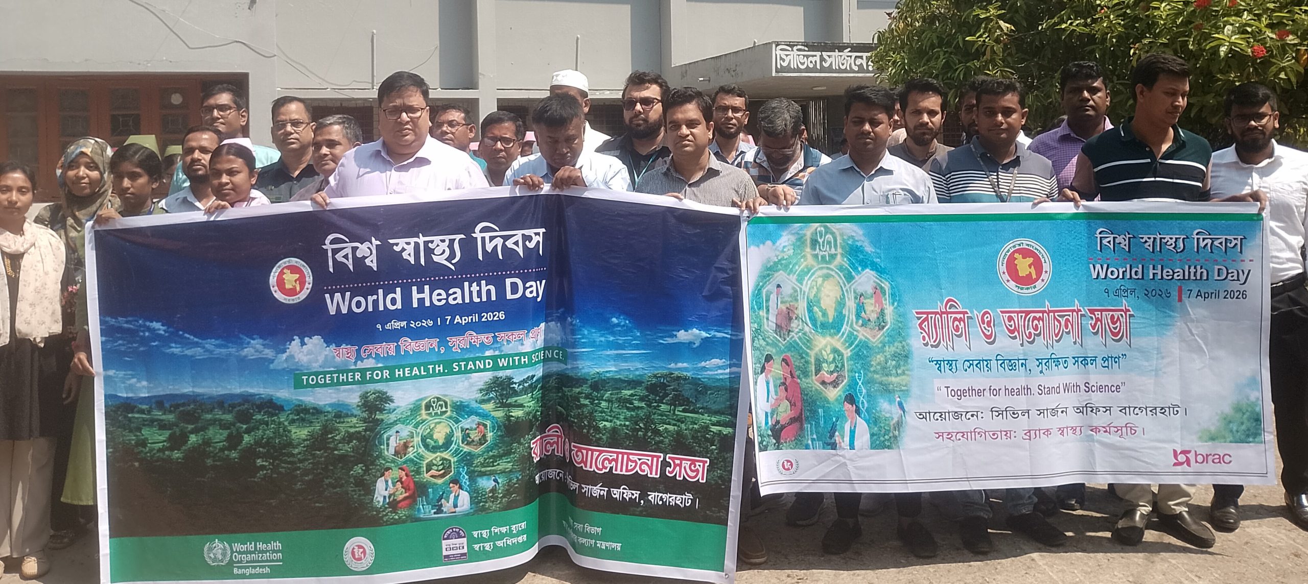 বাগেরহাট প্রতিনিধিঃ বিশ্ব স্বাস্থ্য দিবস উপলক্ষ্যে বাগেরহাটে বর্ণাঢ্য র‍্যালি ও আলোচনা সভা অনুষ্ঠিত হয়েছে। মঙ্গলবার (০৭ এপ্রিল) সকালে “স্বাস্থ্য সেবায় বিজ্ঞান, সুরক্ষিত সকল প্রাণ” এই প্রতিপাদ্যকে সামনে রেখে বাগেরহাট সিভিল সার্জন কার্যালয়ের আয়োজনে এবং ব্র্যাক স্বাস্থ্য কর্মসূচি ও ওয়ার্ল্ড হেলথ অর্গানাইজেশনের সহযোগিতায় এ কর্মসূচির আয়োজন করা হয়।